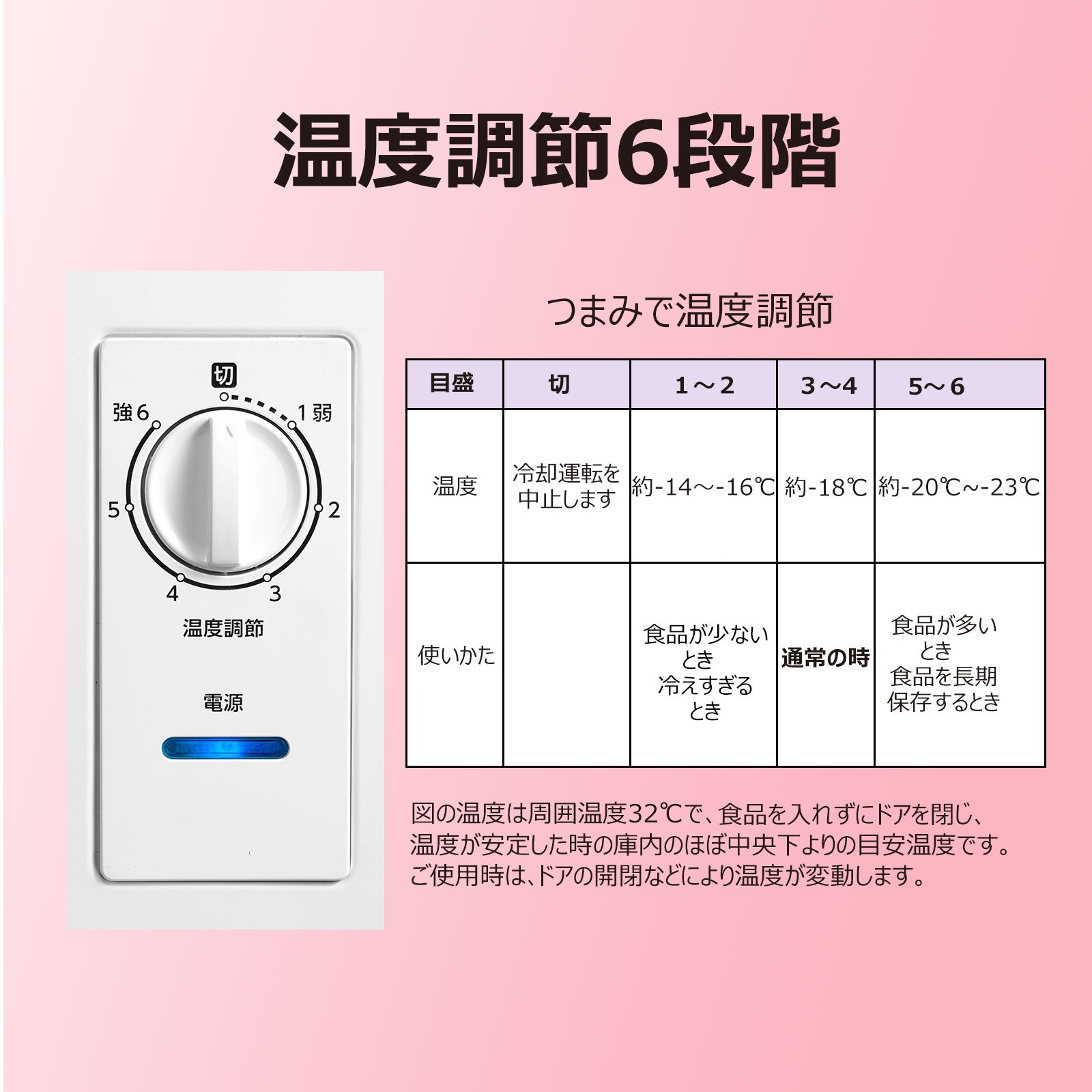 【温度調節】食品の量に合わせて6段階の温度調節が可能です。食品が多い時はしっかり冷却、食品が少ないときは温度を下げて、省エネ運転にすることが可能です。