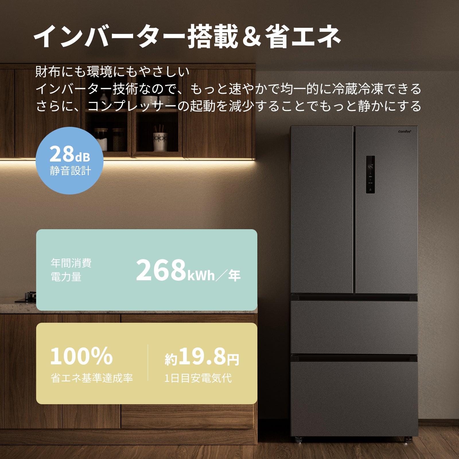 COMFEE'冷蔵庫 401L インバーター搭載 自動霜取り ファン式 RCF408LS1JP(E)