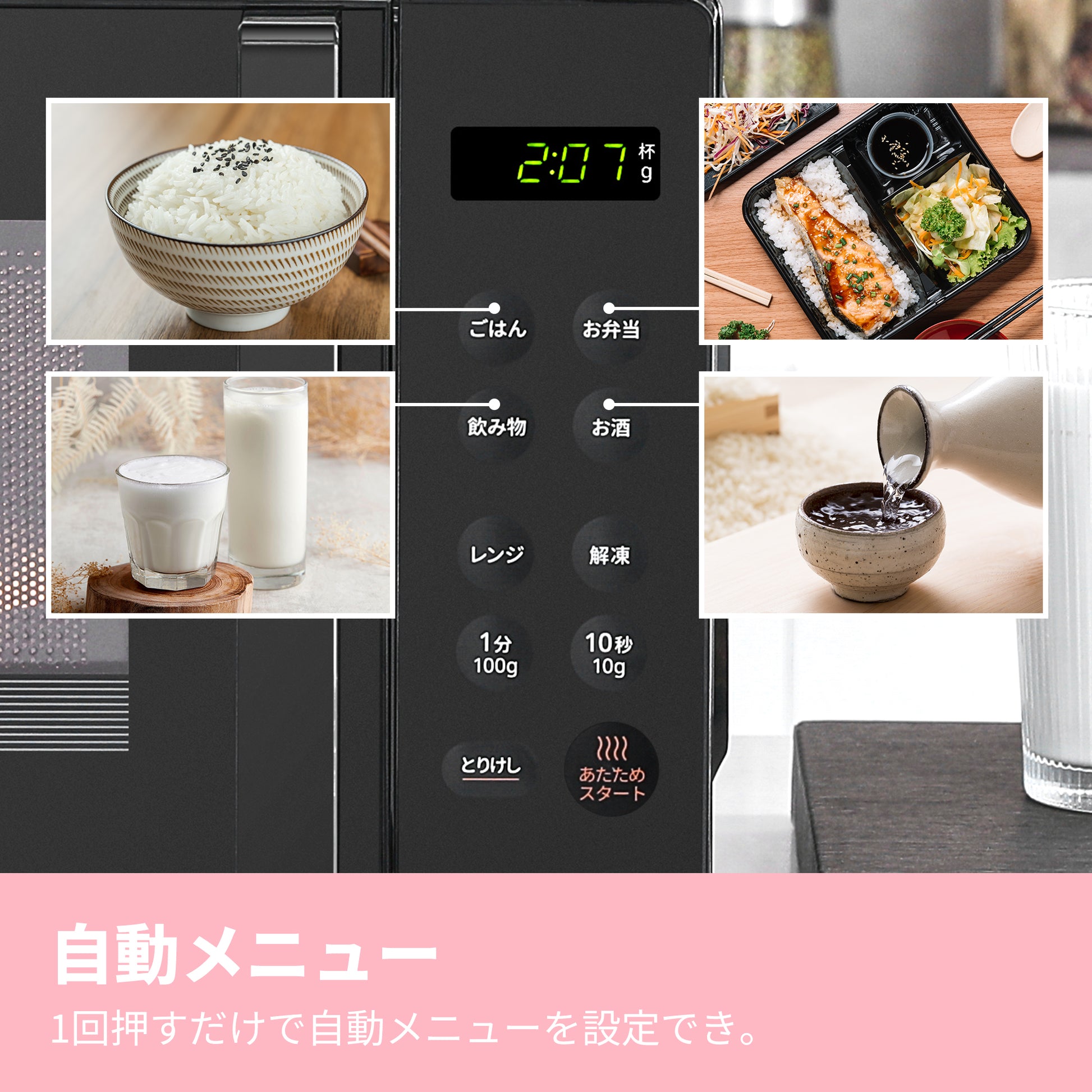 · 【直感操作】調理がスムーズに行える。4つの自動メニュー(ごはん・お弁当・飲み物・お酒)が搭載され、ワンタッチで簡単操作、日常生活を便利に。