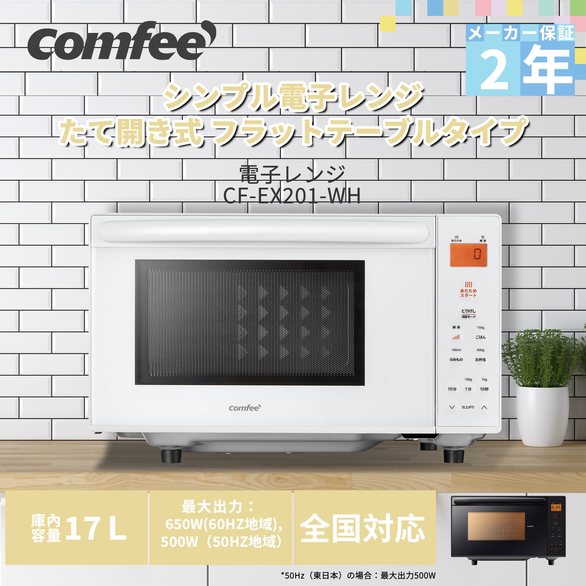 COMFEE' 電子レンジ17L フラットテーブル ホワイト 単機能CF-EX201-WH