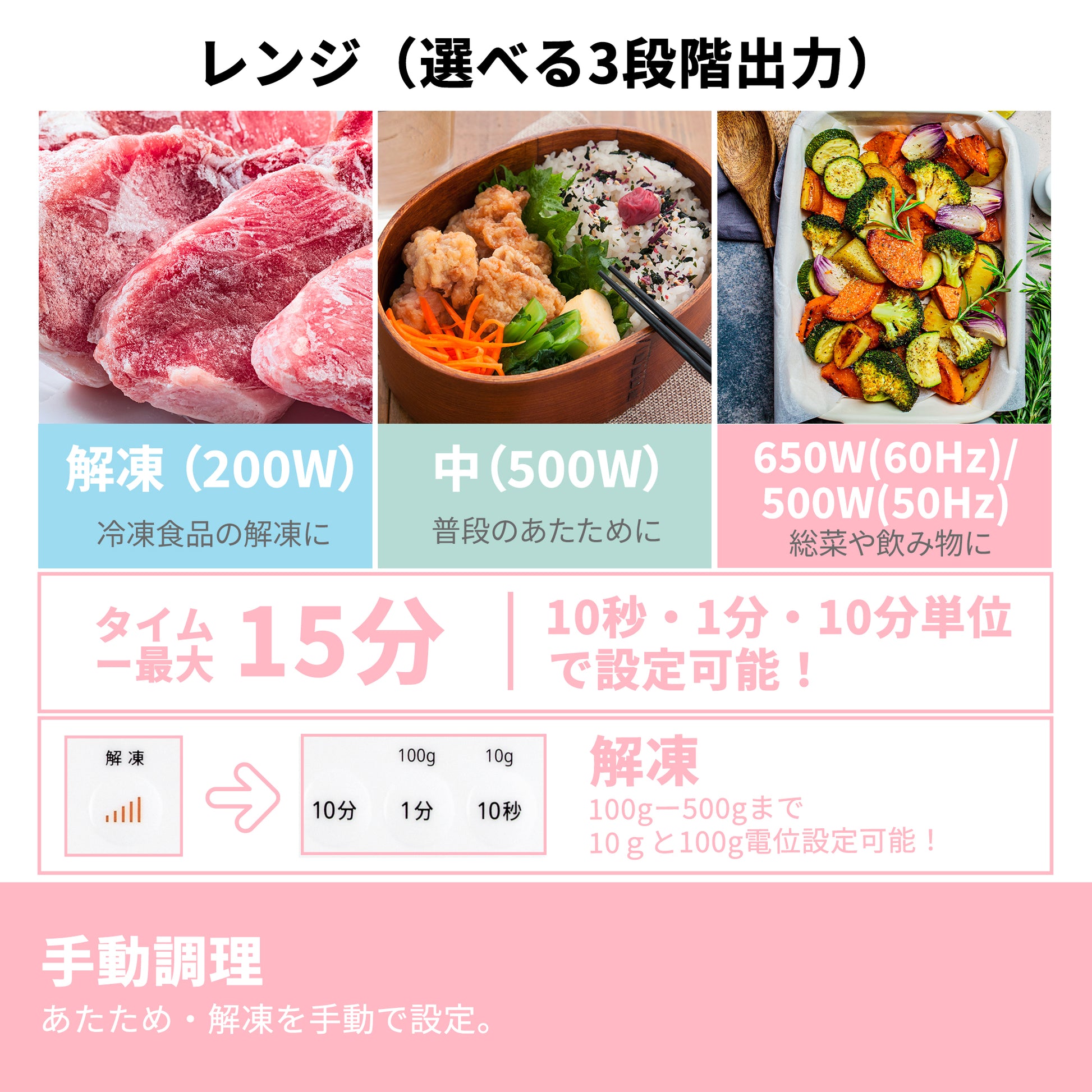 · 17L広い庫内】この電子レンジは、17L広い庫内スペースがあり、幅29㎝まで大きなサイズの弁当や冷凍ピザもラクにあたためることができ、忙しい日々の中でも手軽に食事を準備することができます。